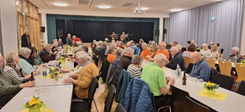 Die anfängliche Zurückhaltung wich aber schnell und der Gesang wurde immer engagierter. Richard Weiß und Dieter Butz übernahmen einige Wortbeiträge, da der bisherige Conferencier Eugen Hausch seine Rolle aufgegeben hat. Nach gut zwei mitreißenden Stunden und einer Zugabe ging das „Sangestreffen“ mit lang anhaltendem Beifall zu Ende und einige Gäste blieben noch in gemütlicher Runde beieinander sitzen.